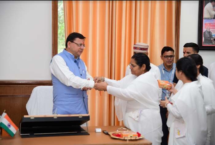 Uttarakhand भराड़ीसैंण: ब्रह्मकुमारी बहनों ने CM धामी की कलाई में रक्षा सूत्र बांधा और उनकी दीर्घायु की कामना की.. By admin - August 21, 2024 Share on Facebook Tweet on Twitter ब्रह्मकुमारी बहनों ने बुधवार को विधानसभा गैरसैंण (भराड़ीसैंण) में मुख्यमंत्री पुष्कर सिंह धामी की कलाई में रक्षा सूत्र बांधा और उनकी दीर्घायु की कामना की। इस अवसार पर उन्होंने मुख्यमंत्री को लक्ष्मी नारायण का चित्र भी भेंट किया।