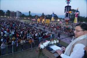 मुख्यमंत्री ने कहा कि हमारे त्यौहार, हमारी समृद्ध सांस्कृतिक परंपराओं से जुड़े होने के साथ ही कृषि, नदियों, पहाड़ों और हमारे इतिहास से जुड़े हुए हैं। युगों-युगों से भगवान राम, भगवान कृष्ण की गाथाएं हमारे सामाजिक परिवेश में प्रेरणा एवं जागृति का स्रोत रही हैं। नवरात्रि के शुभ दिनों के बाद आज विजयादशमी के दिन रावण का पुतला दहन हमारी महान परंपरा का ही हिस्सा है। उन्होंने कहा कि भगवान राम जिस संकल्प को लेकर अयोध्या से निकलते हैं, उसी संकल्प से वे एक बड़ी सामूहिक शक्ति का निर्माण करते हैं और रावण पर उनकी जीत में समाज के हर वर्ग की भागीदारी का मार्ग प्रशस्त करते हैं।