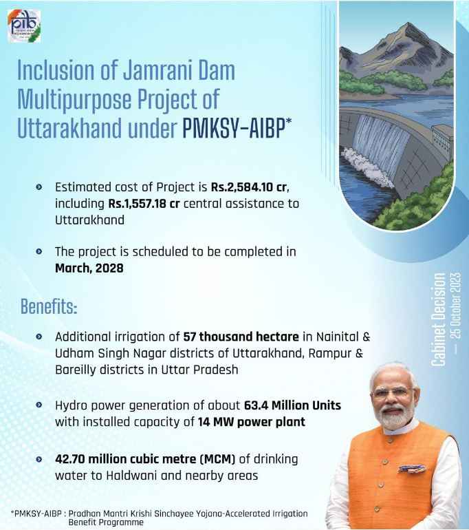विदित हो कि प्रधानमंत्री कृषि सिंचाई योजना (वृहद एवं मध्यम ) के अन्तर्गत जमरानी बांध परियोजना के वित्त पोषण हेतु निवेश स्वीकृति एवं जल शक्ति मंत्रालय की स्क्रीनिंग कमेटी द्वारा स्वीकृति प्रदान की गई थी। उक्त स्वीकृतियों के उपरान्त पब्लिक इन्वेस्टमेंट बोर्ड, वित्त मंत्रालय भारत सरकार को वित्तीय स्वीकृति हेतु जल शक्ति मंत्रालय द्वारा प्रस्ताव प्रेषित किया गया था। प्रस्ताव पर वित्त मंत्रालय द्वारा इसी वर्ष मार्च माह में आयोजित पी०आई०बी० की बैठक में सहमति व्यक्त की गई।